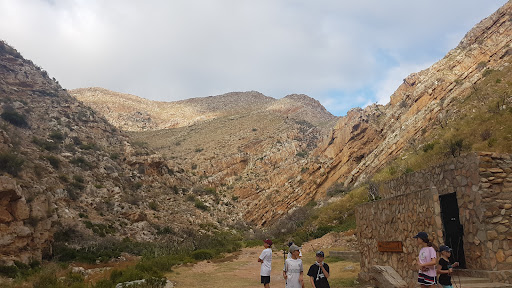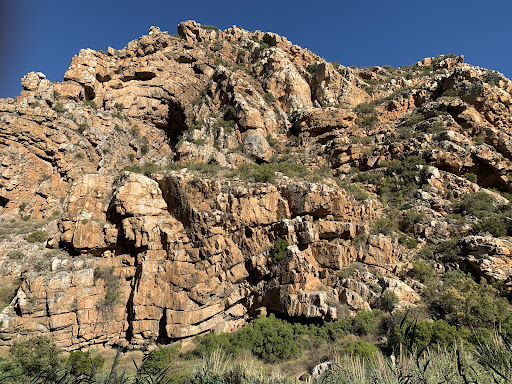 While the pedestrian gate is locked and the road gate is closed (with a "no entrance" sign), you can walk through the latter to enter. The badkloof trail was badly damaged by the winter flooding so we were advised to follow the bloupunt trail and then we came back along the congmanskloof trail, a nice leisurely 2 hour round trip. The first section follows the river bed and requires some scrambling etc and a steep climb to the ridge to return. We understand they're hoping to reopen the badkloof soon. Entry fee 56 rand pp (although he intonated only to pay if we were happy with the trails, which we were). There are two shallow fords to cross so waterproof footwear...