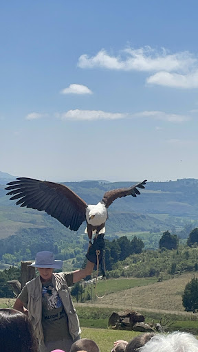 This was an unforgettable experience that is well worth the R150 entry fee. The show is usually around 10:30 in the morning, weather permissible. You get to see some amazing raptors that have been rescued by the team over the years. We saw various types of eagles, vultures, owls and falcons. The team are learned and have spent a considerable amount of time rehabilitating and grooming the raptors that have found Falcon Ridge as their home. We also learned about how birds of prey have been used by hunters for over 4000 years, and the role that dogs have played along with birds over the years. We got to see a Peregrine falcon in full action, catching thermals, hovering over a point and then darting done from a high elevation to catch a prey at super speed….was phenomenal. The Fish eagle was also amazing to watch and hear, the sound you are familiar with from the Fish Eagle Brandy advertisements is pretty much what you will get to hear. It is just sad to learn that the poor Fish eagle things it is more human than bird, due to it living in captivity for such a long time. This was really an amazing experience and we even got to learn why the humble old Owl is perceived as the bringer of doom in some cultures. What was unbelievable was watching and hearing this bird in flight, for it’s size and stature this bird is pretty silent in flight – absolutely amazing experience, well...