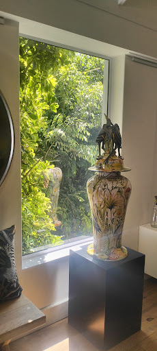 Well laid out gallery spread around a central restaurant space offering a shady quad. We arrived close to lunchtime, finding a good crowd. Works on show offer a range of genres - sculpture, modernist works, figurative works in small and large scale, prints etc. Upstairs space primarily showcases the extensive Ardmore range of works; ceramics, printed fabrics on sale and some even framed. All works are on sale. Charming wrought iron staircase is only for the sure-footed - though there is an alternative wider staircase on the other side. Great that the owners responded to indicate there are wheelchair-friendly entrance options - see the below reply....