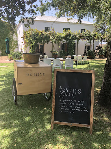De Meye wines: no words can describe the taste of wine. You have to taste it. Without in my opinion sounding very silly. (Coffee people doing the same.) If you taste/buy De Meyer wine you think to yourself hmmmmmmm I like it! Good wine! Celebrate at the restaurant! Don't drink the wine you just bought!!! That you have to take home Below is the first part of this review: As soon as the restaurant opens again everyone should try it! The wine is amazing beautiful Chardonnay!! Only white wine I like. The red wine is delicious. To the none wine expects out there. Go there taste it if you like the taste it is a good wine. Leave the cherries and berries and chocolate to the experts to debate?😁 Restaurant is open again! Try the Cabernet Sauvignon. Remember to book they are busy. So proof that the food is good! While you wait taste some lovely...