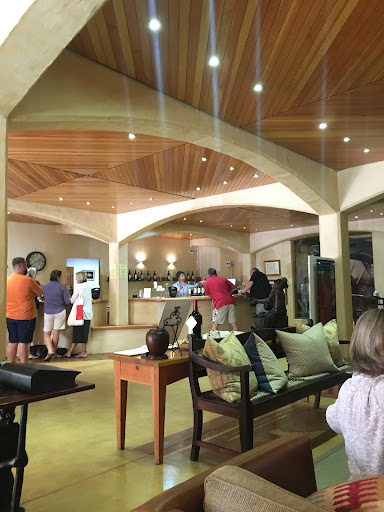 The tasting room is spacious and modern, littered with art, showcasing not only the history, but family and tradition now four generations later, all the while striving for exceptional wines. I particularly liked the showcase of bottle sizes from the magnum (1.5l) to the Mandelazar (18l), while some are even on sale. Set behind some glass doors is a vinoteque cellar that offers a range of older stellar vintages with a small selection of souvenirs available for purchase. There is very comfortable lounge set area in front of great big fire place that I can imagine on a wet winters day would be very inviting. In contrast, the new deck outside under the Leopard trees would also provide a different appeal on a warmer day.