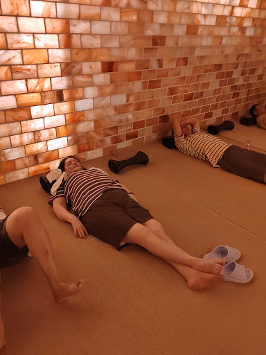 Read moreEs un spa con parque acuático que esta dentro de la plaza comercial Starfield, me gustó el concepto y evidentemente como mexicana es vivir la experiencia completa al estilo coreano, esta nevando y el ir a relajarte y a calentar el cuerpo es una muy buena opción, al entrar te dan tu brazalete con un número que es tu llave hay que quitarse los zapatos y meterlos al primer locker los coreanos andan descalzos y vas a un lobby en el cual las chicas te observan y te dan un uniforme que consta de un short café y una blusa a rayas muy cómoda y tu toalla vas al área de vestidores y ahí te cambias y dejas tus cosas en el locker, esta dividido en varias secciones con diferentes cuartos cada uno a diferentes temperaturas hay uno que es un iglú y con una temperatura más baja y el cual tiene humidificador el cual te ayuda a respirar mejor, hay otro con una piedras donde te acuestas y te ayudan a la circulación, hay otro con sales del Himalaya que es para desintoxicar el cuerpo, otro al estilo Finlandes el cual es caliente par a abrir poros y desintoxicar, hay otro para calmar la ansiedad es relajante y uno que es el cuarto con nubes, uno en el cual tienen tapetes y utensilios para que hagas ejercicio tipo yoga siguiendo las indicaciones de la tele, hay varios sillones que te dan masaje y funcionan poniendo tu brazalete qué te dan, hay sauna en seco esos están separados para hombres y mujeres porque sus costumbres es entrar desnudos hay varias piletas con agua de diferentes temperaturas y tu eliges en cual estar y al fondo hay regaderas con shampoo, acondicionador y gel para ducha y hay otros pequeños donde ponen unos bancos y se bañan sentadas, sales y a un costado hay un cuarto con crema para el cuerpo la cara, y para el cabello, secadora de cabello, peines y todo para que te arregles, y también hay un Aquapark donde hay alberquitas para los niños, hay un jacuzzi y otra alberca para adultos y tienes que ir con playera y shorts no como en latinoamericana que enseña uno de más, y al final cuando sales pagas. Dentro hay un área de comida y un balcon donde antes de salir ponen unas chamarras te la pones sales a meter los pies en agua caliente mientras esta nevando para una bonita foto te metes devuelves la chamarra para que alguien más la use y ponen te caliente para que tomes. Recomiendo la experiencia, me gustó y el uniforme que te dan muy bonito y ya te lo cobran no lo...