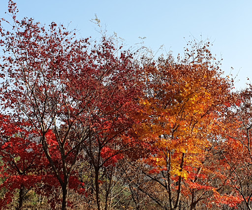 I dropped by at Cheongsong natural recreation forest before go to that restaurant I had a pork cutlet for lunch. When I was there to look around, nobody's there. So that I was able to take my face mask off and I could breathe deeply without any wits. Wow, there were tons of fallen leaves on my way to the top of the small mountain with listening the sound of ASMR of my stepping on the dead leaves, huh I thought that I was seemed one of the forest while I strolled down that path with hit by falling leaves. Not in the future, even not in the past, feeling happiness right now is the most important thing...