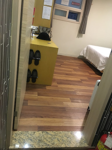ย ย ย Read moreThis is a brand new hotel situated in between hospital and range of love motels. If you never been in Korea before don't be afraid by the latter ones, this is not a red-district. It is 200m from the Haeundae metro and train station and 500m from the beach. The area was very quiet.||Rooms are vert well equipped with wardrobe, desk, kettle, iron, cloth drying rack. Bathrooms are big and elegant. Beds were very comfortable to me (although quite firm, as almost always in Korea). Air-con OK. At the ground floor there is dedicated space were you can prepare meals and eat them. Free coffee and tea next to the reception desk||||The only flaw is very small window. On top of that they are tainted, I guess to avoid installing the curtains. Only small part of it can be opened. I had a view on hospital building that is 100m away.||||I stayed there 6 night and I was happy...