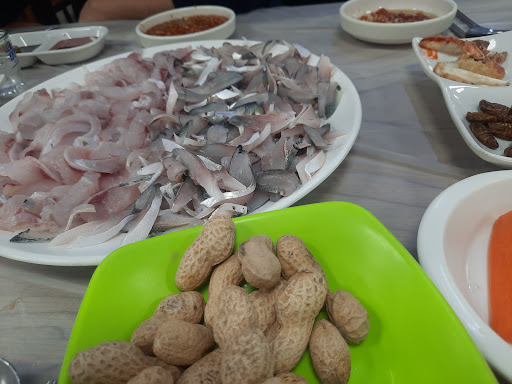 왕초장 다녀왔습니다. 맛집이란 소문듣고 갔는데 미리알고있던대로 감바스를 먹어야해서 인근빵집에서 빵 사고 들어가 먹었는데... 너무 맛있습니다. 장어구이도 너무 맛있습니다. 고등어구이도 너무 맛있습니다. 두가지 모두 빨간양념이 발라져 나오는데 양념맛이 다르고 우리가 흔히먹던 장어양념이 아니라 너무 맛있습니다. 왕초장에서 반드시 먹어야하는 매운탕수제비.. 두말이 필요없습니다. 매일 수제비반죽을 6kg씩 한다고합니다. 또 가고싶습니다. 활어회 주문해서 먹은게 젤 맛이 없었습니다. 분명 싱싱한걸 잡아왔는데 왕초장사장님의 손맛이 없어서 그런가봅니다. 정해진메뉴는 딱히 없는곳입니다. 회센터안에서 판매하는재료로 주문하면 즉시 점포로가서 구매해와서 조리해주십니다. 단점은 주문과함께 각 점포에 가서 재료를 구입해오셔서 조리에 들어가는시스템이라 시간이 좀 걸립니다. 그리고 뒤편에 반건조생선을 취급하는곳이있어서 냄새가 좀 납니다. 깔끔한곳을 선호하시면 비추입니다....