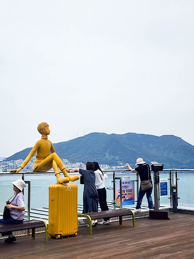 最棒的是這裡免費入場,不搭海上纜車的人,也能來這裡找小王子拍照。也因為這樣,很多人會乾脆在這裡多待一會兒,喝杯飲料、看海發呆、整理照片,讓旅行節奏慢下來。如果在甘川洞文化村不想大排長籠找小王子拍照,蠻推薦來這裡,平日拍照的人不多的,可以拍的很開心~