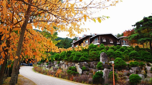 The place where I arrived at Hupo Port after eating sashimi deliciously. Chilbosan located halfway up the luxury goods through a forest of pine trees are green wave donghae a sea view. It is so beautiful and nice place. a log cabin/camp/forest road surrounded by Geumgangsongs I'd like to recommend it as a...