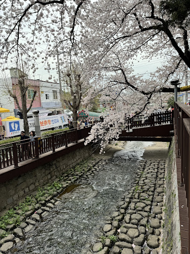 Read moreTo anyone looking for a place to enjoy, relax and feel the spring vibe (especially for people living in a tropical country like me where there is only hot, hotter, and hottest type of weather), this river is the right one for you. We went there during the full bloom season of cherry blossoms and my experience is priceless. It was raining in the evening upon our arrival but it only added to the mood that I was feeling - excited. The river is a long one so make sure to see all the stops there and the food stalls around it sells tasty and affordable korean dishes. There are various coffee shops available too for any coffee lover out there so you won't have to worry about that. Make sure to come and visit this river of you happen to be in Jinhae and let me know...