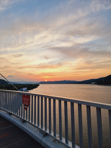 Still, not all is lost. On the first floor, you’ll find restrooms. Head up to the third, and there’s a café waiting to give your feet a break and your eyes a view. And what a view it is—lush green grass, the slow curve of the river, blue skies meeting still water. It’s not showy. It just is.