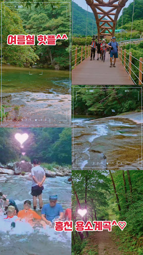 Read more홍천 9경 중, 7경에 속하는 홍천용소계곡을 품은 강원도관광지 중 한곳~ 내촌면 광암리에서 발원하여 두촌면 괘석리를 거쳐 천현리에 이르는 10여㎞의 계곡으로 맑은 물과 기암괴석이 조화롭게 펼쳐져 있는 곳으로 여름에 피서지로 아주 유명한곳이다 #용소계곡 #홍천관광 #강원도여행 #광암리발원 #내촌면여행...