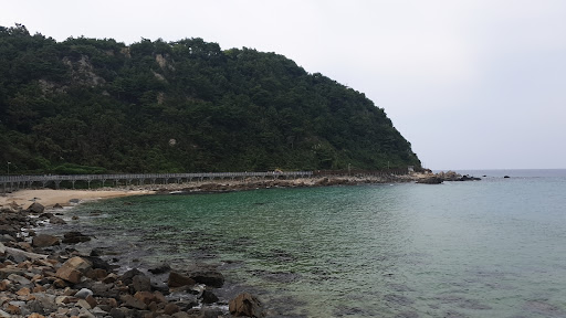 정면에 있는 썬크루즈 리조트를 두고 오른쪽으로 이동하니 손바닥 조형물 2개가 바다를 향해 있는 랜드마크 및 전망대가 있었다. 이 전망대에서는 동해 및 아래에 있는 바다부채길이 보였고 또 전망대 아래 절벽 중간 지점에 전망대 같은 것이 보여 내려가봤는데 위에서 봤을 때에는 별 것 아니겠다 싶었으나 막상 가서 보니 바닥이 유리로 돼있어 꽤나 스릴 있었다.