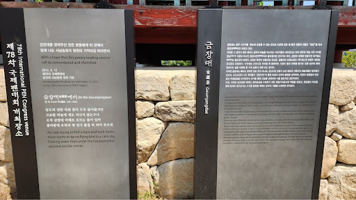 ๊ธ์ฅ๋๋ ๊ฒฝ์ฃผ ์๊ฐ์ง๋ฅผ ํ๋์ ์กฐ๋งํ ์ ์๋ ๊ณณ์ผ๋ก ์ด๊ณณ์ ์๋ฉด ์ ์ถ์ ๊ฑด๋ฌผ์ ์ด๋ฆ์ธ "๊ธ์ฅ"'์ ๋ฐ์ "๊ธ์ฅ๋"๋ผ๊ณ ๋ถ๋ฅด๊ณ ์๋ค. ์ด๊ณณ์ ๊ทธ ๊ฒฝ์น๊ฐ ๋งค์ฐ ๋ฐ์ด๋ ๊ฒฝ์ฃผ์ ํ๋์ ์ง๋๊ฐ๋ ๊ธฐ๋ฌ๊ธฐ๋ค์ด ์ฌ์ด๊ฐ๋ค๊ณ ํ์ฌ ๊ฒฝ์ฃผ์ ์ฌ๋ ๊ฐ์ง ๊ธฐ์ดํ ๊ฐ๊ฐํ ํ๋์ธ ๊ธ์ฅ๋์ ์ด๋ผ ๋ถ๋ฆฌ์ด์ง๋ ๊ณณ์ด๊ธฐ๋ ํ๋ค. ๊ธ์ฅ๋ ์์ด์ ๋ง๋ค์ด์ ์ ๊ธฐ์ฒญ์(์์ด๊ฐ ๋ฌผ์ ๋น ์ง๊ฒ์ ๋ณด๊ณ , ์ฒญ๋ ์ด ๊ตฌํ๋ฌ๊ฐ๋๋ฐ, ์๊ฐ ์ฃผ์ธ์ธ ์ฒญ๋ ์ ๊ตฌํ๋ฌ ๊ฐ์ผ๋, ์์ฉ๋์ด์ด ๋ชจ๋ ๋น ์ ธ๋์ค์ง ๋ชปํ ๊ณณ)๋ ํ์ฐ๊ฐ์ ๋ณธ๋ฅ์ธ ์์ฒ๊ณผ ๋ณต์์ด ๋ง๋ฌผ์ด์ง ๊ฒ์ผ๋ก, ๊น๋๋ฆฌ์ ๋จํธ์์ค์ธ (๋ฌด๋ ๋)์ ๋ฐฐ๊ฒฝ์ด ๋์๋ ๊ณณ์ผ๋ก๋ ์ ๋ช ํ๋ค. ์๊ฒ ํด๋ ์ ๋ผ ์๋ ์๋น์ ๋ ์ํ๋ผ๋ ๊ธฐ์์ด ์๊ณผ ์ฐํ๋ฅผ ์ฆ๊ธฐ๋ ๋์ค ์ค์๋ก ๋น ์ ธ ์ฃฝ์๋ค๋ ์ค์ ๋น๋กฏํด ์ฌ๋ฌ๊ฐ์ง ์คํ๊ฐ ์ ์ ์ค๋ ๊ณณ์ด๋ค. ์ด๋ฌํ ๊ธ์ฅ๋๋ ๋นผ์ด๋ ๊ฒฝ์น๋ง ์๋ ๊ฒ์ด ์๋๋ผ. ์ ์ฌ์๋ ์ธ๋ฅ๊ฐ ๋จ๊ธด ์ต์ด์ ๊ฐ๋ก์ด์ ์์ ์ํ์ธ ์๊ฐํ๊ฐ ์์ผ๋ฉฐ, ์กฐ์ ์๋์ ์์ธ ํน๊ฐ๋ค์ด '๊ธ์ฅ๋์'์ ํ๊ด ์์์ ์ ๋ผ์ ํฅ๋ง์ ์๊ฐํ์ฌ. ์์ฐ์ ์์ํจ๊ณผ ์ธ๊ฐ ์ถ์ ๋ถ์ง์์์ ์ธ์ํ๋ฉด์ ๊ณผ๊ฑฐ๋ฅผ ํตํด ์ค๋์ ๊ฒฝ๊ณํ๋ฉฐ ์๋ฅผ ์์กฐํ๋ ๊ณต๊ฐ์ด์๋ค. ๋ํ, ์ด๊ณณ์ ์ผ์ง์๋ ๋์๋ ๊ฒฝ์ฃผ์์ฑ์ ์๋ถํ๊ธฐ ์ํ ์ ์ฐฐ๊ธฐ์ง๋ก์์ ์ญํ ์ ํ์๊ณ . ์๊ตฐ๋ค์ด ๋ถ์ฐ์ ํตํด ํตํด๋ก ๋ฌผ๋ฌ๋ฌ๋ค๋ ์์์ ๋ค์์ ๋์๋ ์น๋ฆฌ์ ๊ธฐ์จ์ ๋ ธ๋ํ๋ ๊ณณ์ด์๋ค. ๋ํ...