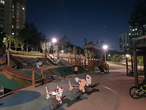 Read more동탄2 에 몇 안되는 공원. 꽤나 큰 규모를 자랑하며, 아이들 데리고 산책하거나 강아지를 데리고 산책하기에 딱 좋은 곳. 공원 중심부에는 넓은 잔디밭이 있어 햇살 좋은 날에는 돗자리를 펴 놓고 여유를 부려도 아주 좋은 곳. 여름에는 임시로 물놀이도 즐길 수 있도록 하니 요 주변에 사시는 분들은 차를 타고 바리바리 찾아오는 것도 괜찮음. 다만, 대로 건너 공사하는 곳이 아직은 꽤 있어서 먼지 날리는 것은 감안해야 함. 공원 주변에 편의시설이 부족해 슈퍼나 편의점에 찾아 가려면 꽤 걸어야 함. 화장실도 입구에 하나 있는게 다라서 공원 끝까지 산책중에 화장실에 가고 싶으면 꽤나...