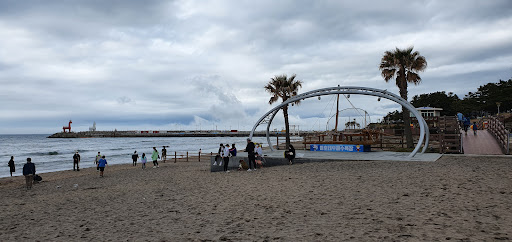 In comparison with other beaches around Jeju, this is not the best place. HOWEVER, I've lived here 10 years ago and the condition was much worse. Dirtier, neglected beach area, trash, and washed up jellyfish everywhere. Now it is much better. Sure it doesn't look neat and tidy due to all the new motels, outdoor bars, and restaurants/cafes. But that's normal for most of Korean beach shores. Now it is better maintained and cleaned up. The sand is naturally dark. The new horse-shaped lighthouses are cool and when the water is low, you'll see the natural springs that pour out fresh water from Mt. Halla (Han-Ra). I think this place came pretty far from...