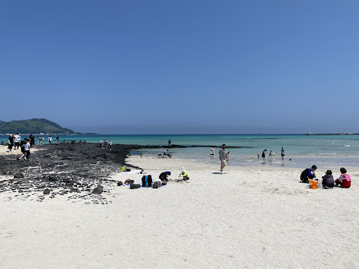 전복, 소라 등 해산물이 많이 잡히며 주위에 송림과 잔디가 있어 캠핑하기에도 적당하다. 1일 최대 수용 능력은 2만 명이다. 주변 관광지로는 용암 동굴 지대, 비양도,...