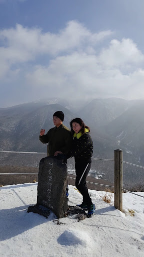 The second time we bought crampons and were more prepared! But because it was the weekend, there were a lot more people taking the trails (it shares a carpark with Eorimok trail). We had to park a ways down the mountain on the roadside and climb up from there.