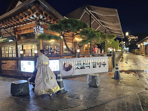 My recent trip to Jeonju Hanok Village was an unforgettable and wholesome experience, offering a beautiful glimpse into Korea's rich cultural heritage. The highlight of the day was wearing a traditional hanbok, which made the visit feel even more special. As I walked through the charming alleys lined with traditional hanoks, I felt like I had stepped back in time. The architecture, wooden rooftops, and cobblestone paths created a peaceful and picturesque atmosphere that was both calming and inspiring.