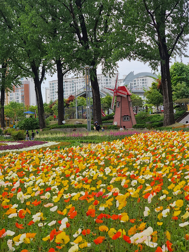 I came here last weekend. Parked my car along the road. The park is so big. There are two swings, sandbox, big field where kids can run safely. And many kinds of flowers with wind mill, perfect to take pic. Depends on how u take the pic, with perfect angle, u can get pic like u are in Netherlands. No entrance fee coz this is a park...