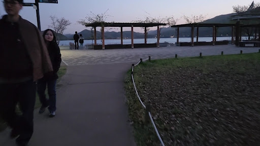You can hear the waves crashing on the river banks. You can see the islands in the Han river and also the point where the Han river splits into three parts.