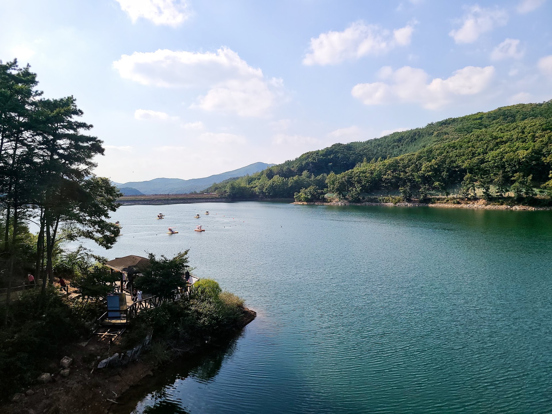 ย ย ย Read moreBeautiful lake views on the hill with a bridge that is shaken by steps from the people crossing on it. Some roads around this lake are under construction. Like Sanjeong lake in Pocheon, it provides a great way to stroll around with good air. It has camping sites where you might stay with your camping vehicles. But the road is winding and pretty up and down to drive with...