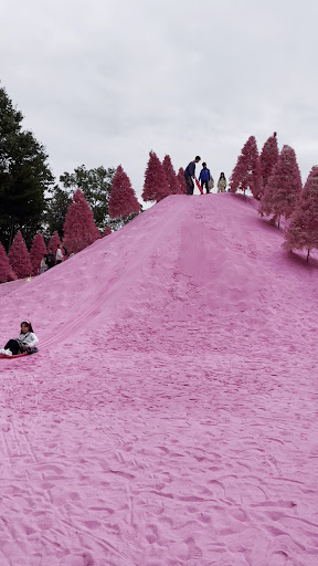 The only place that was full of humans, was the pink theme pink mully grass with an artificially colored shocking pink sand slope.