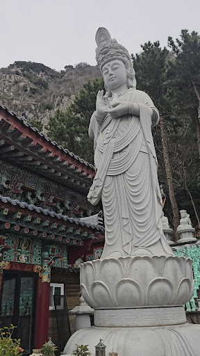 During our recent trip along the coastline, we had the delightful surprise of stumbling upon Bomunsa Temple. Although the temple itself wasn’t open during our visit, we were still able to explore the outdoor exhibits, which turned out to be a fantastic experience!