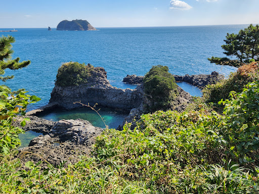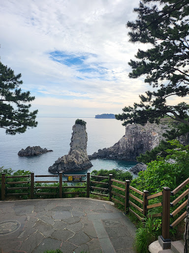 A rock looks like a pool located near SeoGwiPo. They open it for swimming during the summer season. The legend says ์ ๋ (A holy beings from Taoism, like an angel)s went here for bathing. Apparently the holy beings don't mind bathing with salty sea water. Anyways you can use the parking for Oedolgae(์ธ๋๊ฐ), which is 4 minutes walk from here. There is a steep stairs...