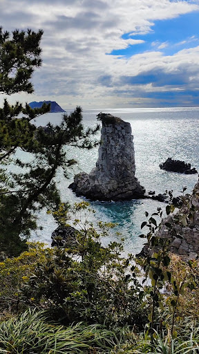 Read moreOedolgae Sea Stack in Seogwipo, Jeju is a stone pillar having a height of 20 m and a width of 7~10 m after the long-term erosion of the volcanic rock by waves. Due to the volcanic eruption that happened 120,000 years ago, this area has become a rocky island comprised of trachyandesites which are grey rocks having smal holes. Oedolgae Sea Stack is situated at the center, and its surrounding has magnificent view complete with coastal erosional cliff and caves. In the late Goryeo, when the Goryeo army defeated the Yuan army, the remaining forces of the enemy escaped to Beomsum Island. At this time, General Choe Yeong deceived and won over the enemy by making Oedolgae as a shape of a general. Thus, Oedolgae is also called Janggunbawi Rock, meaning rock in the shape of a general. Moreover, according to another legend, an old woman who was waiting for her husband who went to sea and never came back turned into a rock and...
