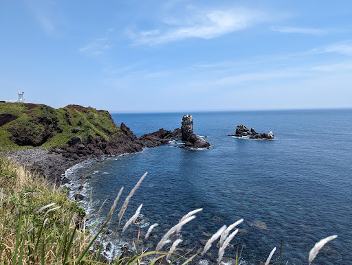 Key features include: Red Volcanic Ash & Unique Rock Formations: The coastline's defining characteristics. All In Candy House (올인하우스): a relic of a bygone era, now a poignant reminder of impermanence. Seondolbawi Rock Formation: Striking, jagged rock formations along the coast. Bangdupo Lighthouse (방두포등대): A steep climb, but the most popular spot, expect crowds here. Jeju Glass House: A modern architectural highlight, creating a striking contrast to the rugged landscape. Seopjikoji Grand Swing: An Insta-famous photogenic location with a view of Seongsan Illchubong. The Hyeopja Yeondae Smoke-Signal Station: A historical signal station, silently guarding the coast since Joseon Dynasty.