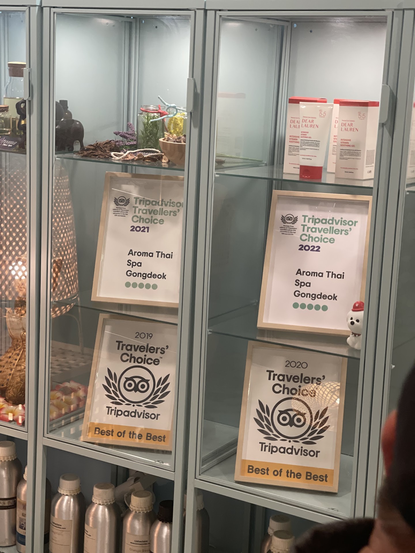 Read morein Mapo-gu, tucked in a lower ground floor area below Sweet Buns, Sweet Coffee cafe you will find Aroma Thai Spa that offers various kind massages that will relieve your body pains from all the walking and sightseeing. The sweet and accommodating owner will show you choices and scents of oil you can choose from. After selecting from the presented massage type you are then led to a room, given with disposable underwear and couple of hanged robes you can chose from. FYI, just a suggestion when you are asked if strong or medium I would say medium because they will dig with elbows. And ensure that the masseuse understands the part you want them to focus on because they will just go by their routine, even though you draw from the paper given to you. And if going as a couple, either you ask for separate rooms or advise the owner to tell the ladies no talking, cause they will, so you can truly relax. We paid 220,000kw for 1hr 45 minutes couple massage with hot stones. My husband and I enjoyed a cup of buckwheat Tea and dark chocolate that came complimentary after your massage. The experience is really wonderful and would definitely go back. So if you’re looking for a good place, I recommend...