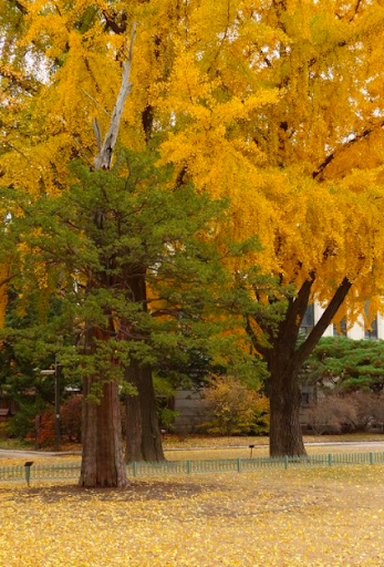 One of the things we very much enjoyed about visiting Deoksugung during the autumn was the fantastic fall foliage display seen throughout the palace grounds. There were numerous spots where we found multiple colours of tree leaves that made for lovely photographs. The autumn scene here was considerably more impressive here than at other palace grounds visited during this trip to Seoul.