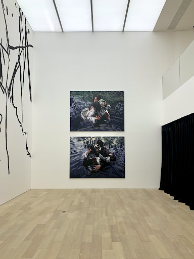 Miranda Forrester 흑인 퀴어 여성 작가래요. 저는 퀴어에 대해 모르지만, 작품 감상에 어려움은 없었어요. 인물들의 얼굴이 그려지지 않아 상상력이 더 자극되더라구요. 여성들이 모여서 서로 편안하게 있는 모습이 보기 좋았어요. 전시 공간에 배치된 식물들도 좋았어요.