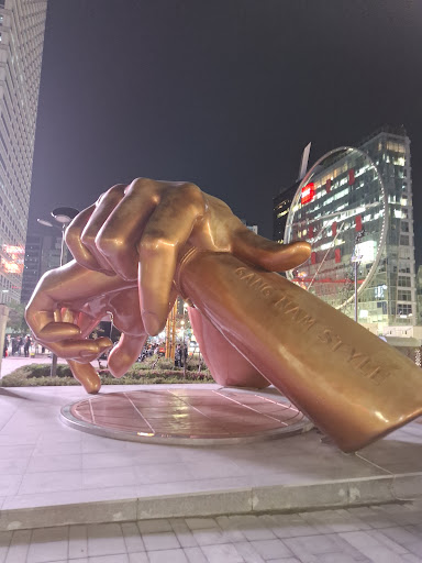 Read moreThe Gangnam Style Sculpture is a large bronze monument located outside the east gate of the COEX Mall in Seoulâs Gangnam district, not at Gangnam Station as some might expect. Unveiled in 2016, the sculpture stands about five meters high and eight meters wide, and is modeled after the iconic crossed-fist hand gesture from PSYâs 2012 global hit âGangnam Styleâ. Rather than depicting PSY himself, the statue focuses on the signature âhorse-ridingâ dance move, with two giant hands poised above a small stage. The statue was commissioned by the Gangnam district office as a tribute to the songâs massive cultural impact and as a new city landmark, despite some controversy and mixed opinions from locals and PSY himself, who reportedly felt the idea was excessive. The site is a popular photo spot, particularly among international visitors, and is easily accessible via Bongeunsa Station (Exit 7) or Samsung Station (Exit 6), making it a fun, quick stop for those exploring the COEX area and...