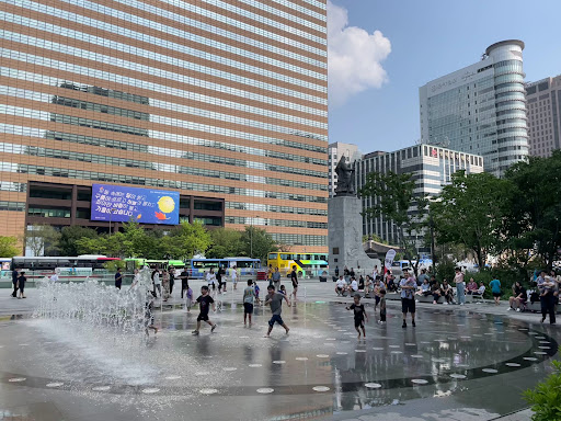 As the weather is clear, I walk slowly down Gwanghwamun Square, It was just nice to see a lot of Koreans and foreigners coming together to enjoy cultural events and children playing in the bottom fountain.