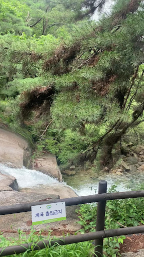 Entire Jinggwan Valley is prohibited from entry As this is a water safety hazard area, entry into the valley is prohibited in accordance with Article 28 of the Resource Parks Act. In case of violation, a fine of less than 500,000 won - thatโs is written in Korean...