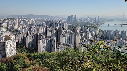 Great mountain park in the heart of the city. Easy walking trails, great views to Han river from above. Especially nice views for sunrise and night scenery. When the air quality is OK, Lotte tower in Jamsil can be seen very clearly. Park connected with nearby apartment complexes which makes easy access for hikers. Place to revisited...