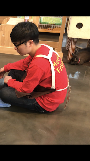 Read morePet cafe My hubby and I went to this cafe today. This cafe doesn’t look like chilled cafe but a pet shop with some unusual animals. My concern is potential sanitation issues that might come from having animals roaming around near where food is prepared and consumed. Indeed, this cafe only serve bottled cold drinks/cold drinks. The environment makes you don’t want to drink anything as it’s a bit messy and smell of animals. You don’t want to chill here. It can take you for 30 mins to see all animal which is not worth it. The entrance fee is 10000 won without any drinks. And they put some of animals into the cage. Still it's hard to say how truly humane it is for wild animals to be put into an unnatural habitat and pet by crowds of strangers all day. There is a lady seems very care about the animals. Hwr, one of the male staff is extremely rude to customer. I sat on the chair next to the wallaby cafe and looked at the wallaby. He suddenly touched my shoulder and wave me to stand up. He didn’t say any words and pull out my chair and put it back next to table. I was shocked and didn’t know how to respond. The female staffs asked him ‘Why’ in korean but I didn’t understand what that male guy explained to that female staff. But this guy didn’t bother to explain or say excuse me to me at all. Her behavior is so weird and that’s not the right way to treat customer. Maybe he doesn’t speak any English? Attached is this male staff’s photo. I hope he will see my complaint here and improve his customer service.