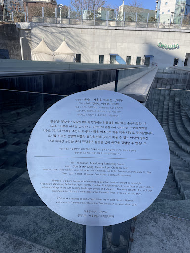 ย ย ย Read moreTitle: YoonSeul : Malli-dong reflects Seoul Artist: SoA (Yerin Kang, Jaewon Lee, Chihoon Lee) Material / Size: Steel Frame Truss, Stainless Steel, Super mirror finished, LED Light, Precast Concrete plate, D: 25m Year: 2017 Host / Organize : Seoul Metropolitan Government โYoonSeulโ is a pure Korean word meaning ripples that shine in sunlight or moonlight. gently trembles like light reflected on surfaces of water while it shines and drags in the surrounding landscape, people and Seoullo. The work consists of a roof that illuminates the city and a void space under the earth where you can sit and stay. This work is installed as part of Seoul Urban Art Project โSeoul is Museumโ which aims to โrenovate the entire city of Seoul to an art...