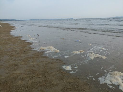 일요일 오후에 도착한 몽산포해수욕장의 모습. 파도 끝에는 정체를 알 수 없는 거품이 염전처럼 쌓여있고 쓰레기는 해안가를 따라서 산개해있었음.