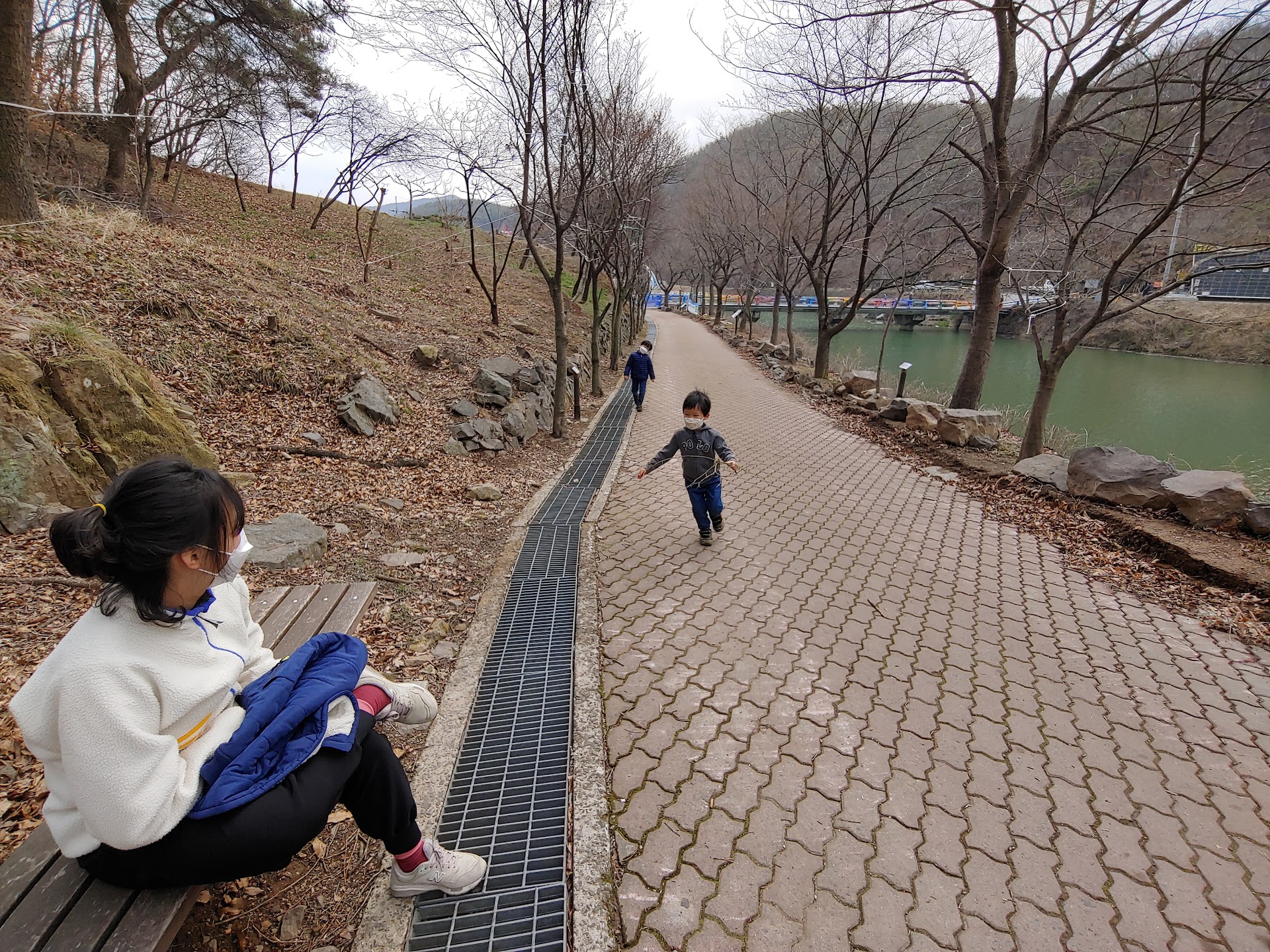 ๊ณต์ ์ ๊ตฌ์ ๋ค์ด์๋ฉด ์๋น์ผ๋ก ๋ฐ์ง์ด๋ ์ ์์ง๊ฐ ์ ์ผ ๋จผ์ ๋์ ๋ค์ด์จ๋ค. ์ ์์ง ์ค์์ ๊ฐ๋ก ์ง๋ฅด๋ ๊ธธ์ด 112m, ํญ 1.5m์ ์ถ๋ ๋ค๋ฆฌ๋ฅผ ๊ฑด๋ ์ฐ์ฑ ๋ก ์ผ์ฃผ๋ ๊ทธ์ผ๋ง๋ก ์ผํ์ด๋ค. ๋ฒ๋ ๋๋ญ์์ด ์๋ฉด์ ๊ธธ๊ฒ ๋์ด์ ธ ์๊ณ , ์ด๋ฆ๋ชจ๋ฅผ ๊ฝ๊ณผ ๋๋ฌด๋ค์ด ์ ์์ง๋ฅผ ๋ผ๊ณ ์ฐ์ฑ ๋ก๋ฅผ ๋ฐ๋ผ ๋๋ฌ์ณ์ ธ ์๋ค. ๊ฐํน ๋ฐฑ๋ก๊ฐ ์๋ คํ ์ํ๋ฅผ ๋ฝ๋ด๊ธฐ๋ ํ๋๋ฐ, ํ ํญ์ ๊ทธ๋ฆผ์ด ๋ฐ๋ก ์๋ค.