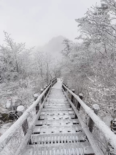 ✔️제가 방문한 날 기준(12/25) 세석대피소에서 백무동으로 하산하는 길에 결빙이 심했어요.. 얼음이 아주아주 화려하고 유려하게 얼었음^0^/ 아이젠만 믿으시면 안돼요 다들 안전 등산하세용😊