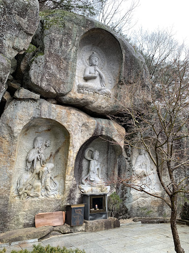Read more서암정사는 한국의 3대 계곡으로 유명한 칠선계곡을 마주하는 천혜절경에 자리잡고있다. 주차장에 주차 후 오르막길을 약10분 정도 올라가야 합니다. 제일먼저 '백천강하만계류, 동귀대해일미수'(수많은 강물 만 갈래 시내 흘러, 바다에 돌아가니 한물 맛이로다)란 돌기둥 두개가 반긴다. 입구부터 다양한 마애불이 눈에 띕니다. 서암정사의 백미는 불경속 극락세계의 장엄함을 바윗굴 속에 재현해 놓은 극락전 석굴법당이다. 입구가 좁아 그냥 지나칠 수 있는데 막상 들어가보면 수십명을 수용할 수 있는 복층구조의 넓은 공간과 아미타불을 위시해 8보살, 10대제자, 신장단 등 장엄하면서 다양한 모습에 감탄을 금치 못한다. 실내 촬영이 금지되어 있어서 직접...