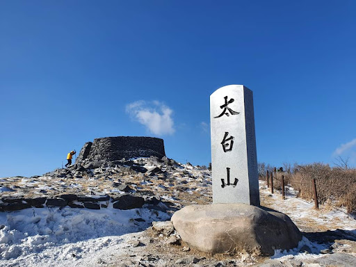하늘에 제사를지내는 천제단이 나를 반겨주었다. 폭설이 무색할정도로 정상에는 사람들이 줄을 서서 사진을 찍고있었다. 우리도 사진을 찍고 내려왔는데 사실 절경에 너무 푹빠져 그 추운강풍에서도 삼십분동안을 정상에 있다가왔다.