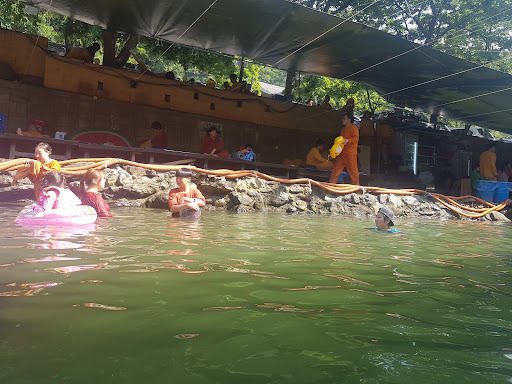 물은 좀 탁했지만 수심이 얕아 수영보다는 아이들·커플 단위로 물놀이하기 좋았어요. 계곡따라 식당도 잘 갖춰져 있었고 간이물놀이장도 설치돼 있던. 식당에서 운영하는 샤워장도 있더라구요!