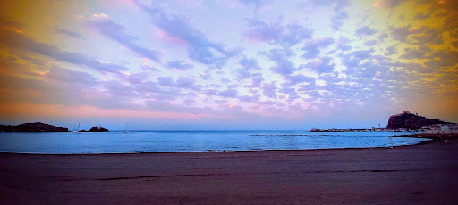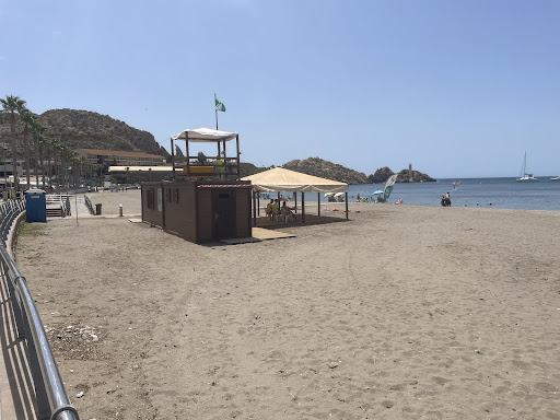INFORMACIÓN Playa urbana junto al paseo marítimo. Situada en el centro de la ciudad, abierta al sur, descansa entre el Club Náutico y el Promontorio de La Aguilica. Regenerada también en los últimos años es hoy una de las mejores playas. Formada por arena gris, entrada suave al mar y fondo arenoso (excepto el corto tramo de la desembocadura de la Rambla de "Las Culebras"). Ocupa la casi totalidad de la Bahía de Levante, considerada una de las más bellas del Mediterráneo, da albergue al Puerto Pesquero y al Deportivo. Playa y Marina con bandera azul desde 1992. Cuenta con área para deportes de playa. Playa con distinción Q de Calidad, Bandera Azul, Calidad Turística y Ecoplayas.