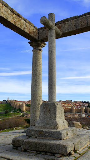 Inmejorable lugar para obtener una vista de Ávila con su muralla. El propio monumento es interesante. Según la wikipedia: El humilladero de Los Cuatro Postes es un monumento religioso situado en la ciudad de Ávila. Está formado por cuatro columnas dóricas de cinco metros de altura sobre cuyos capiteles se asientan otros tantos arquitrabes con las armas de la ciudad; en el centro del cuadrado formado por las columnas, sobre una peana, se erige una cruz de granito.
