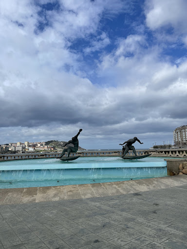 Read moreInaugurada en 1992 y situada entre la playa del Matadero y la playa del Orzán, justo frente al Hotel Meliá María Pita. Esta fuente destaca por su grupo escultórico que muestra a dos hombres de bronce surfeando y manteniendo el equilibrio sobre sus tablas, obra del artista gallego José Castiñeiras, quien también es responsable de otras esculturas notables de la ciudad. La fuente rinde homenaje a los surfistas que practican este deporte en las playas de A Coruña y se considera uno de los monumentos más fotografiados y queridos por locales y turistas. El movimiento de las esculturas refleja la dinámica y el desafío de dominar las olas, un espectáculo que se puede observar en vivo desde el mirador cercano en días con oleaje. Además de su valor artístico y simbólico, la Fuente de los Surfistas es un punto de encuentro social para la comunidad surfista local, donde también se rinden homenajes a sus figuras más destacadas. La fuente ha sufrido algunos actos vandálicos, pero sigue siendo un símbolo reconocido y un referente cultural del deporte del...