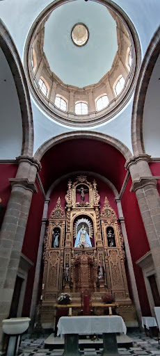 La iglesia en sí es impresionante, construida en piedra de cantería local, con una fachada neoclásica que resalta en el paisaje urbano. Por dentro, es luminosa y tranquila, con detalles artísticos en altares, vitrales y esculturas religiosas que reflejan siglos de devoción e historia local.