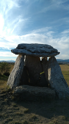 Fantástico. Dolmen levantado en el Calcolítico (hace 4.500 años, en el 2500 s.C), situado en una ligera elevación a los pies de la sierra y que domina buena parte de la llanura. Se presenta exento, sin corredor y sobre todo sin túmulo y según he podido leer, se ignora si lo tuvo en algún momento (cómo en otros dólmenes de la zona de Álava, fue descubierto en el primer tercio del XIX, y algunos sufrieron importantes modificaciones aunque parece que este se ha conservado bastante bien). Los escasos materiales que se encontraron en las excavaciones de los años 60, handesaparecido.