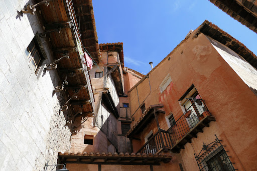 Arquitectura Tradicional 🏠: Este rincón está compuesto por casas medievales con fachadas de colores terrosos 🎨, balcones de madera 🌳 y detalles arquitectónicos típicos de Albarracín. Las casas están estrechamente agrupadas, creando un ambiente acogedor y encantador.